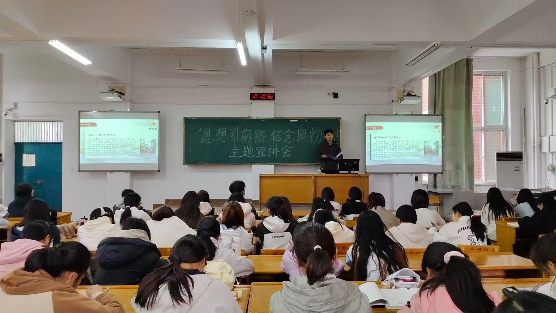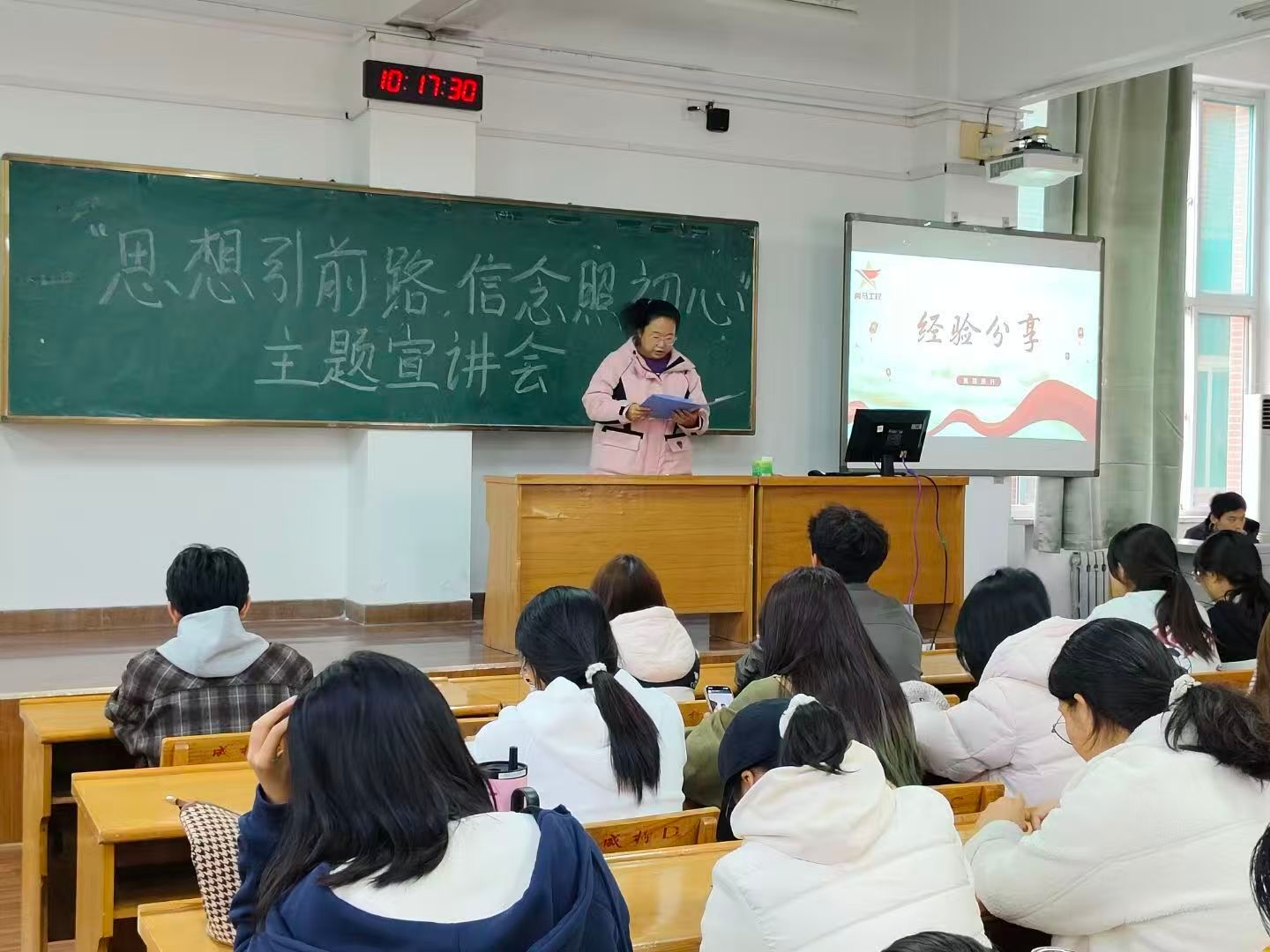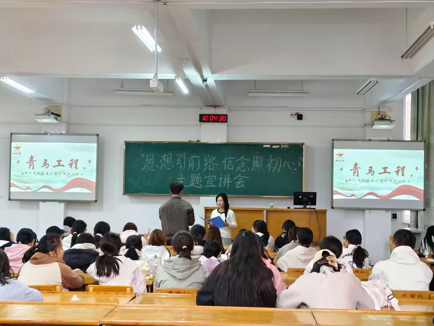 10月18日上午,我院“青马工程”培训班在南区5210教室举办了“思想引前路,信念照初心”主题宣讲会,院青马工程辅导员曹慧敏、素拓师许嘉琪、贾慧玲、马喻敬及2025级全体新生参加。