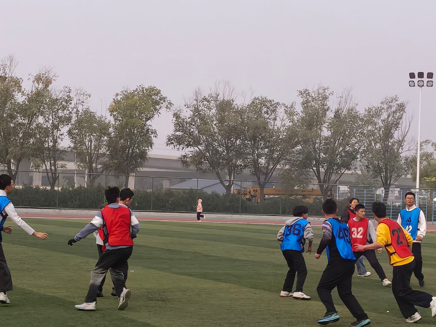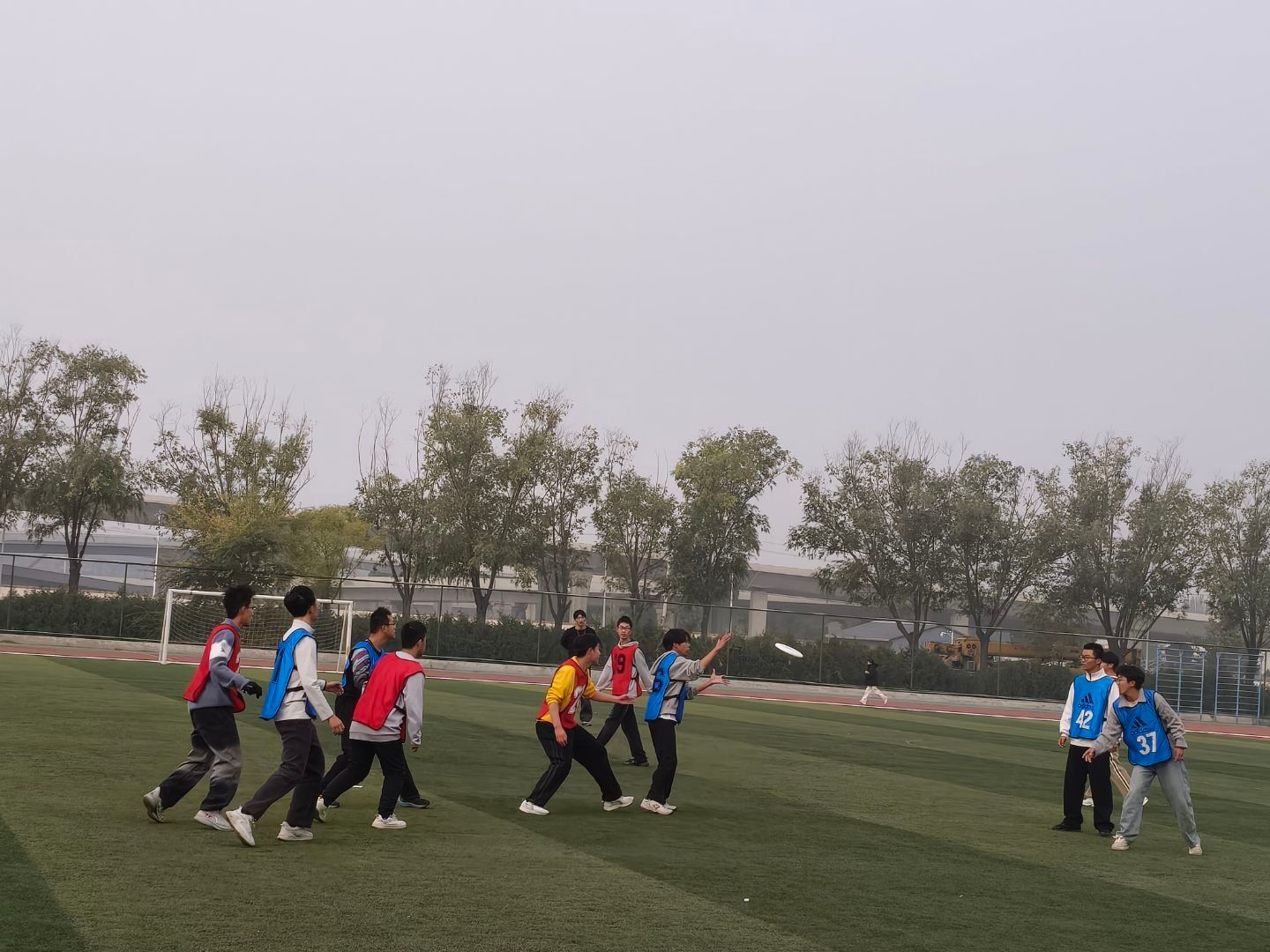 飞盘比赛在北区操场率先展开激烈角逐。在32进16的比赛中,我院代表队与化学与化工学院展开对决。赛场上,队员们配合默契,飞盘在空中划出一道道优美的弧线,每一次精准传接、每一次顽强防守,都凝聚着全队不屈的斗志与信念,展现出团结拼搏的精神。