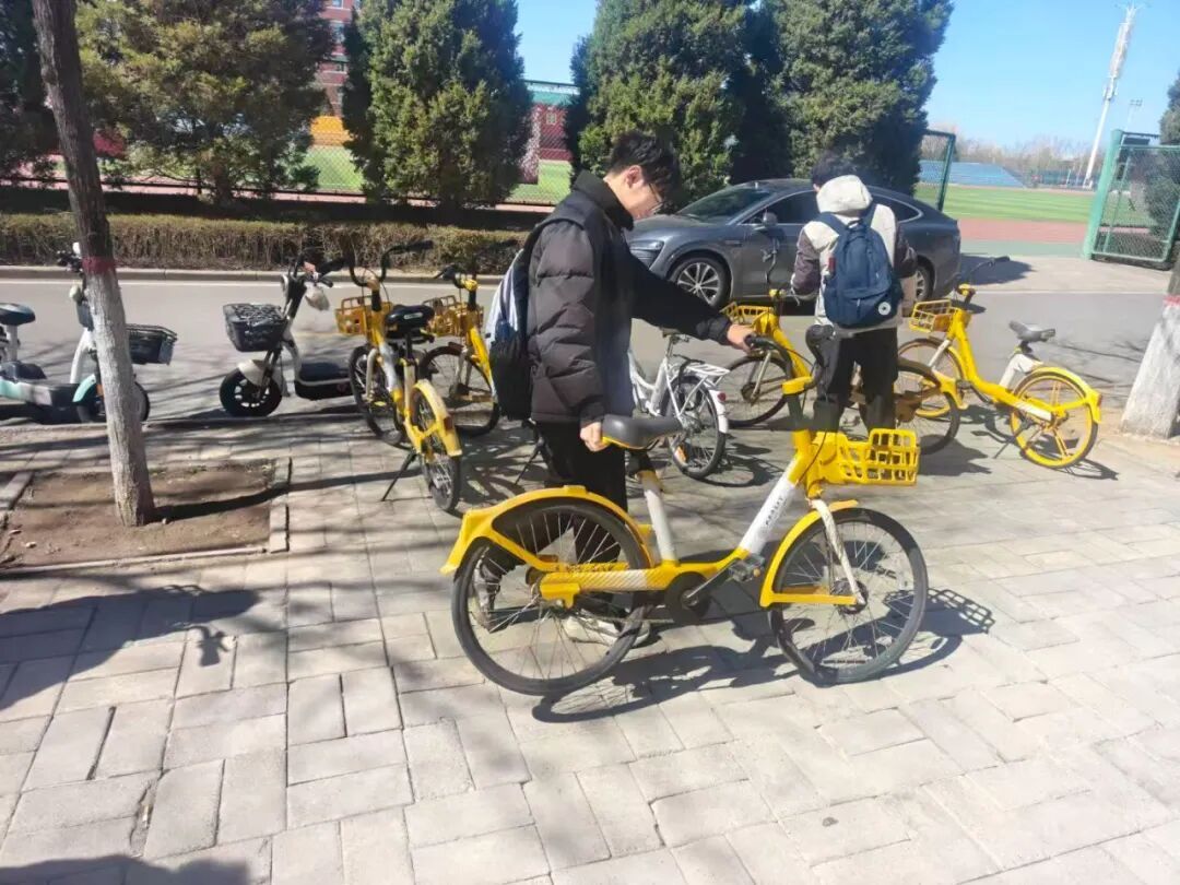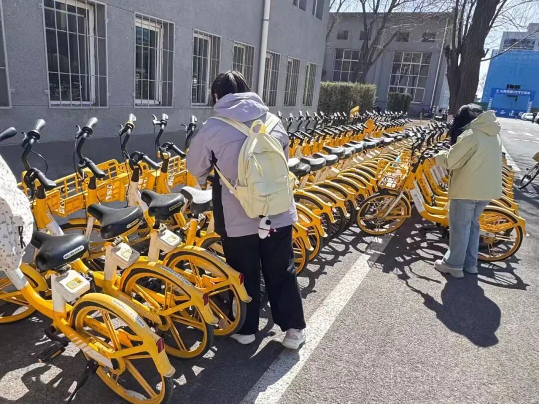 活动中,同学们分工协作,对校园各共享单车集中停放点进行规范整理。大家扶起倒地车辆,将占用盲道、人行道的单车移至指定区域,并统一调整摆放方向,做到停放整齐、排列有序。在大家的共同努力下,共享单车摆放规范有序,校园道路更加整洁通畅,为师生日常出行提供了便利。