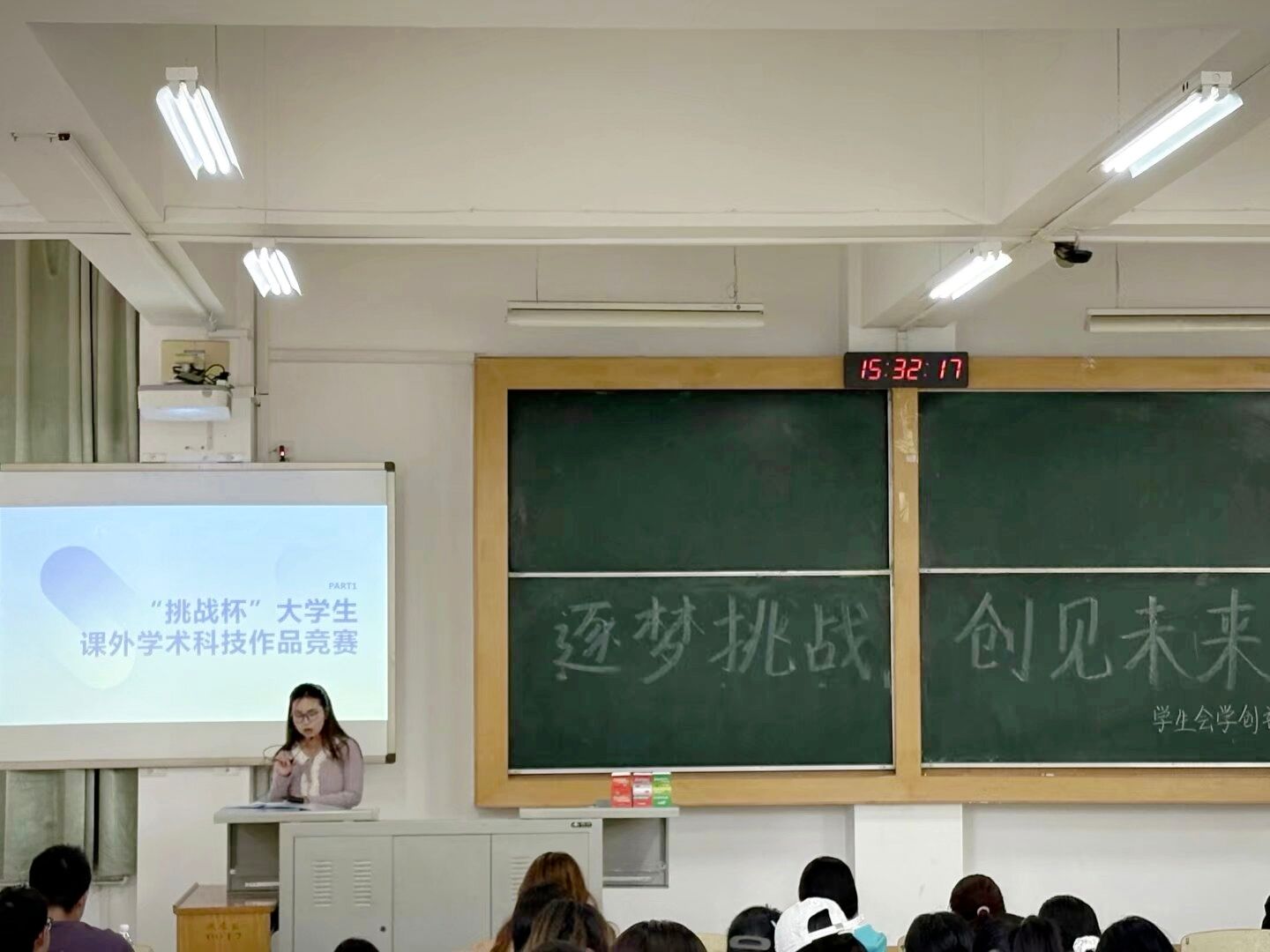为加深同学们对“挑战杯”的了解,激发学生的创新创业热情,9月27日下午,我院学生会学创部在南区5209教室举办了“逐梦挑战,创见未来”双创宣讲会。本次活动由学创部志愿者王唯嘉主持。