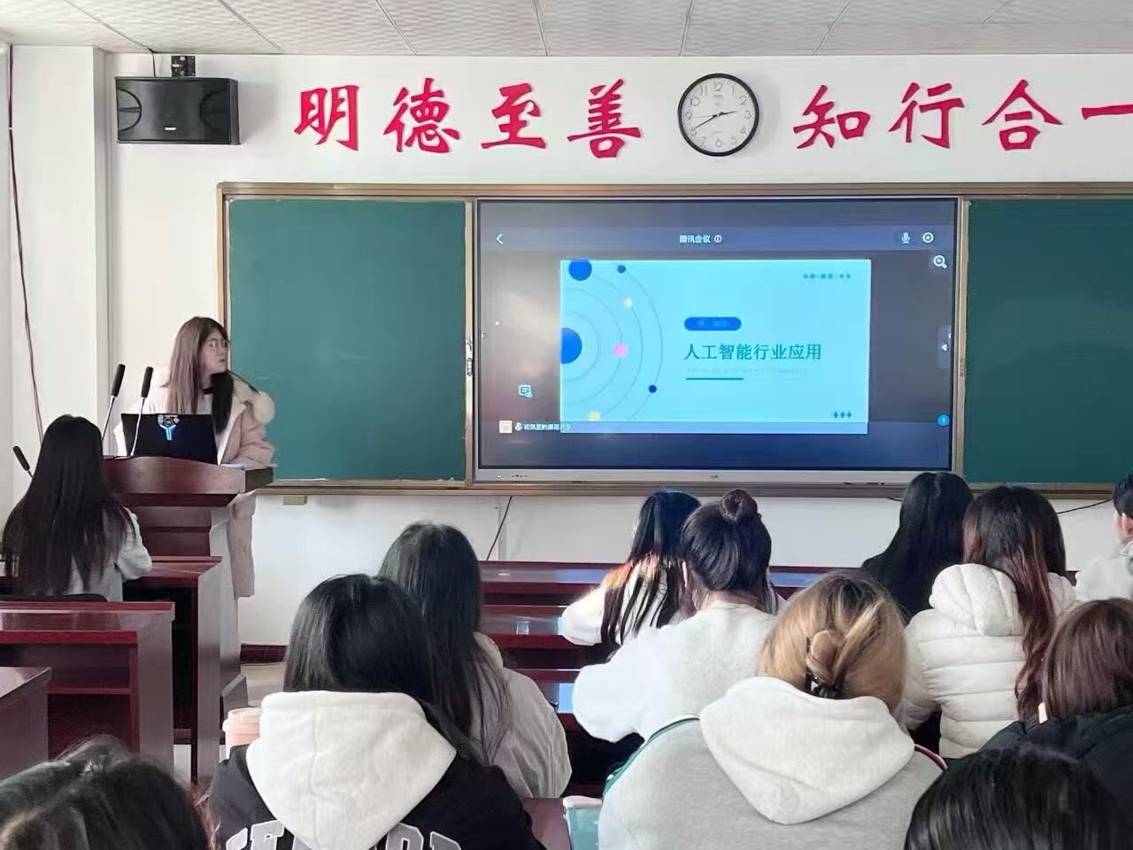 调研结束后,团队面向产业学院学生举办了《人工智能技术革新与应用前景》专题讲座。内容涵盖人工智能基础原理、AI技术在生物医药、农产品及食品药品检测等领域的深度融合案例,以及AI系统从开发到落地的全流程简介。现场通过简明实例演示,系统介绍了从数据准备、模型构建到系统开发与应用部署的全流程,增强了学生对AI技术落地逻辑的直观理解,激发了同学们跨学科学习与创新的热情。